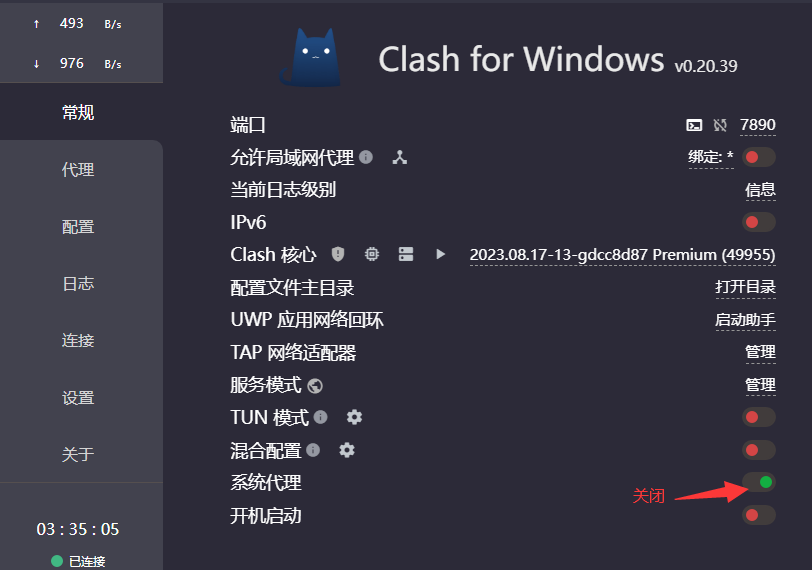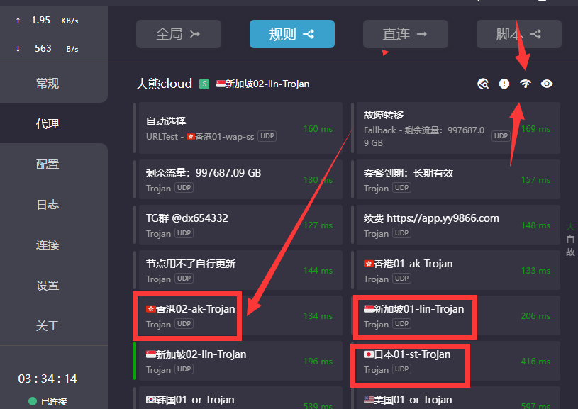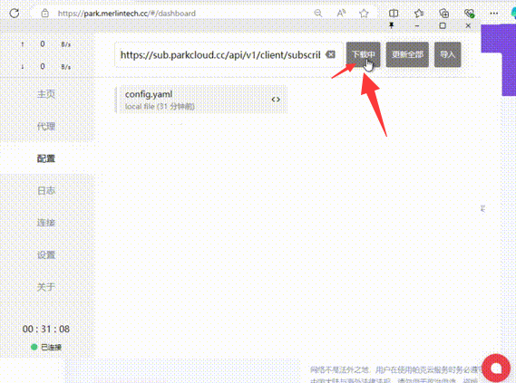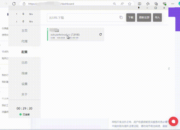 <p><strong>使用前请先确认是否满足以下条件:</strong></p> <blockquote class="default"> <p>✔ 我的大熊云会员没有过期</p> <p>✔ 设备中没有开启其他VPN类软件</p> <p>✔ 我的网络不是校园网或者公司内网</p> </blockquote> <br> ~{song}<p>clash云盘下载地址 -> <a title="点击下载" href="http://www.appkcc.com/clash456" target="_blank" class="external">点击下载</a></p>~  <br> <h4 id="h4-2.u89E3u538Bu5B89u88C5"><a class="reference-link" name="2.解压安装"></a><span class="header-link octicon octicon-link"></span>2.解压安装</h4><p>将下载好的压缩包直接解压到电脑内某目录,打开该目录,运行<strong>「 Clash for Windows 」</strong>并在弹出的提示框中点击<strong>「 是 」</strong>继续运行。</p>  <br> <h3 id="h3-u5BFCu5165u8BA2u9605"><a class="reference-link" name="导入订阅"></a><span class="header-link octicon octicon-link"></span>导入订阅</h3><h4 id="h4-u65B9u5F0Fu4E00uFF1Au81EAu52A8u5BFCu5165"><a class="reference-link" name="方式一:自动导入"></a><span class="header-link octicon octicon-link"></span>方式一:自动导入</h4><p>使用浏览器登录进入大熊云首页「 用户中心 」,如果您忘记了帕克云官网地址可前往 <a title="地址发布页" href="/doc/65/">地址发布页</a> 找到最新的官网地址</p> <p>在「快捷导入订阅」中找到<strong>「 Clash订阅 」</strong>按钮并点击</p> <p>点击后会自动提示跳转到 Clash 客户端,根据提示点击<strong>「 打开Clash for Windows 」</strong>,此时 Clash 客户端中会出现大熊云订阅配置文件。</p>  <br> <blockquote class="default"> <p>如果系统无法自动跳转或订阅失败,请参考下方 手动导入 方式</p> </blockquote> <br> <h4 id="h4-u65B9u5F0Fu4E8CuFF1Au624Bu52A8u5BFCu5165"><a class="reference-link" name="方式二:手动导入"></a><span class="header-link octicon octicon-link"></span>方式二:手动导入</h4><p>使用浏览器登录进入大熊云首页 「 用户中心 」 ,如果您忘记了大熊云官网地址可前往 <a title="地址发布页" href="/doc/12/">地址发布页</a> 找到最新的官网地址</p> <p>在「快捷导入订阅」中找到<strong>「 复制订阅地址 」</strong>按钮并点击钮</p> <p>打开 Clash 客户端的<strong>「 配置 」</strong>栏,将刚刚复制的地址粘贴到<strong>「 从URL下载 」</strong>框中点击<strong>「 下载 」</strong>,此时 Clash 客户端中会出现订阅配置文件。</p>   <br> <h3 id="h3-u5F00u542Fu4EE3u7406"><a class="reference-link" name="开启代理"></a><span class="header-link octicon octicon-link"></span>开启代理</h3><p>在 Clash 客户端的 <strong>「 配置 」</strong> 栏中,选择刚刚导入好的订阅文件,选中后会出现绿色选中提示。</p> <p>在 Clash 客户端的<strong>「 代理 」</strong>栏中,选择<strong>「 全局 」</strong>然后在下方节点列表中选择一个国家地区节点。</p> <p>在 Clash 客户端的<strong>「 主页 」</strong>栏中,找到并打开<strong>「 系统代理 」</strong>选项。</p> <p>此时电脑任务栏 Clash 图标由蓝色变成橙色,即成功开启了VPN代理。</p>  <br> <blockquote class="default"> <p><strong>使用建议:</strong></p> <p>订阅地址是你个人账号密码及节点的总集成,不能泄露给任何人及网络,以防止他人使用及知晓你的密码。 </p> <p>建议定期手动更新或者设置成每2小时自动更新订阅,即可保持与服务器同步更新。</p> </blockquote> <br> <h3 id="h3-u66F4u65B0u8BA2u9605"><a class="reference-link" name="更新订阅"></a><span class="header-link octicon octicon-link"></span>更新订阅</h3><h4 id="h4-1.u5173u95EDu4EE3u7406"><a class="reference-link" name="1.关闭代理"></a><span class="header-link octicon octicon-link"></span>1.关闭代理</h4><p>打开 Clash 客户端的 「 主页 」 将<strong>「 系统代理 」</strong>关闭(这一步很重要)</p>  <br> <h4 id="h4-2.u66F4u65B0u8BA2u9605"><a class="reference-link" name="2.更新订阅"></a><span class="header-link octicon octicon-link"></span>2.更新订阅</h4><p>打开 Clash 客户端的<strong>「 配置 」</strong>栏, 点击配置文件后面的<strong>「 刷新 」</strong>按钮即可成功更新订阅大熊云节点。</p>  <br> <blockquote class="default"> <p><strong>更新失败解决办法:</strong></p> <p>在 Clash 客户端的 「 配置 」 栏中右键删除 「 大熊云 」 的配置文件。</p> <p>前往 <strong>「 导入订阅步骤 」</strong> 根据教程一步一步操作,重新配置导入节点。></p> </blockquote> <br> <h3 id="h3-u5F02u5E38u9000u51FA"><a class="reference-link" name="异常退出"></a><span class="header-link octicon octicon-link"></span>异常退出</h3><p>请注意,如果你在未退出Clash软件的情况下直接关机,可能会导致再次开机后网络无法使用</p> <p>此时重新打开Clash软件,开启代理 或 退出应用 即可正常使用网络</p> </div>