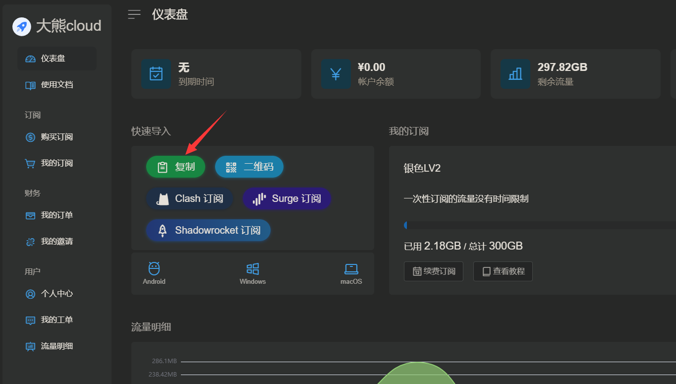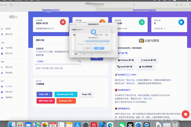 <p><strong>使用前请先确认是否满足以下条件:</strong></p> <blockquote class="default"> <p>✔ 我的大熊云会员没有过期</p> <p>✔ 设备中没有开启其他VPN类软件</p> <p>✔ 我的网络不是校园网或者公司内网</p> </blockquote> <br> <h3 id="h3-u5BA2u6237u7AEFu5B89u88C5"><a class="reference-link" name="客户端安装"></a><span class="header-link octicon octicon-link"></span>客户端安装</h3><h4 id="h4-1.u5BA2u6237u7AEFu4E0Bu8F7D"><a class="reference-link" name="1.客户端下载"></a><span class="header-link octicon octicon-link"></span>1.客户端下载</h4><p>以下链接提供 ClashX 的安装包 软件提取密码:ai5r</p> <a style="display: block; border: 1px solid #ddd; padding: 16px; border-radius: 8px; text-decoration: none; color: inherit; width: 100%; box-sizing: border-box;" href="http://www.appkcc.com/s/clash5678" target="_blank"> <div style="display: flex; justify-content: space-between; align-items: center;"> <div> <h3 style="margin: 0;">🚀 Clash Verge 下载 如果下载不了用第二个</h3> </div> <div style="font-size: 1.5em; margin-left: 16px;">></div> </div> </a> <br> <a href="http://211.101.246.232:8888/down/07MwLpWvPNr1" style="display: block; border: 1px solid #ddd; padding: 16px; border-radius: 8px; text-decoration: none; color: inherit; width: 100%; box-sizing: border-box;"> <div style="display: flex; justify-content: space-between; align-items: center;"> <div> <h3 style="margin: 0;">🚀 Clash Verge 下载 软件2 提取码:8888</h3> </div> <div style="font-size: 1.5em; margin-left: 16px;">></div> </div> </a> <h4 id="h4-2.u62D6u5165u5B89u88C5"><a class="reference-link" name="2.拖入安装"></a><span class="header-link octicon octicon-link"></span>2.拖入安装</h4><p>官网首页下载客户端后,打开下载的<strong>「 ClashX.dmg 」</strong>文件,将<strong>「 ClashX 」</strong>拖拽到<strong>「 Applications 」</strong>文件夹当中</p>  <br> <h4 id="h4-3.u542Fu52A8u5BA2u6237u7AEF"><a class="reference-link" name="3.启动客户端"></a><span class="header-link octicon octicon-link"></span>3.启动客户端</h4><p>在启动台或者应用程序中找到<strong>「 ClashX 」</strong>启动软件,首次打开的时候会有安全提示,点击<strong>「 打开 」</strong>选项</p> <p>根据系统提示点击<strong>「 安装 」</strong>然后输入电脑账户的密码并<strong>「 安装帮助程序 」</strong>,检测核查更新可根据情况自行选择检查或不检查。</p> <p>成功打开软件后,状态栏会出现<strong>「 ClashX 」</strong>的图标<br>  </p> <h3 id="h3-u5BFCu5165u8BA2u9605"><a class="reference-link" name="导入订阅"></a><span class="header-link octicon octicon-link"></span>导入订阅</h3><h4 id="h4-u65B9u5F0Fu4E00u81EAu52A8u5BFCu5165"><a class="reference-link" name="方式一 自动导入"></a><span class="header-link octicon octicon-link"></span>方式一 自动导入</h4><p>使用浏览器登录进入大熊云首页「 用户中心 」,如果您忘记了大熊云官网地址可前往 <a title="地址发布页" href="/doc/65/">地址发布页</a> 找到最新的官网地址</p> <p>在「快捷导入订阅」中找到<strong>「 Clash订阅 」</strong>按钮并点击</p> <p>点击后会自动提示跳转到 Clash 客户端,根据提示点击<strong>「 允许 」</strong>按钮。</p> <p>在 ClashX 弹出的<strong>「 添加托管配置文件界面 」</strong>点击<strong>「 确定 」</strong>按钮,即可成功订阅配置文件。</p>  <br> <blockquote class="default"> <p>如果系统无法自动跳转或订阅失败,请参考下面 <strong>手动导入</strong> 方式</p> </blockquote> <br> <h4 id="h4-u65B9u5F0Fu4E8Cu624Bu52A8u5BFCu5165"><a class="reference-link" name="方式二 手动导入"></a><span class="header-link octicon octicon-link"></span>方式二 手动导入</h4><p>使用浏览器登录进入大熊云首页「 用户中心 」,<br>在「快捷导入订阅」中找到<strong>「 复制订阅地址 」</strong>按钮并点击钮</p>  <br> <p>打开<strong>「主菜单」->「配置」->「 托管配置 」->「 管理 」</strong> ,在<strong>「 托管的配置文件 」</strong>下方点击<strong>「 添加 」</strong>按钮。</p> <p>将刚刚复制的地址粘贴进入<strong>「 Url 」</strong>栏,<strong>「 Config Name 」</strong>栏可随意填写,点击<strong>「 确定 」</strong>即可成功订阅配置文件。</p> c'c <br> <h3 id="h3-u5F00u542Fu4EE3u7406"><a class="reference-link" name="开启代理"></a><span class="header-link octicon octicon-link"></span>开启代理</h3><p>打开<strong>「 主菜单 」</strong>在<strong>「 出站模式(规则) 」</strong>中选择<strong>「 全局连接 」</strong>,然后在<strong>「 GLOBAL 」</strong>中选择一个国家地区节点。</p> <p>其他规则如「其他流量、Telegram」等可自行设置选择节点。</p>  <br> <p>选择好国家地区节点并改为全局连接后,点击<strong>「 设置为系统代理 」</strong>开启系统代理。</p> <p>此时状态栏 ClashX 图标<strong>由灰色变成黑色</strong>,即成功开启了VPN代理。</p>  <br> <blockquote class="default"> <p><strong>使用建议:</strong></p> <p>订阅地址是你个人账号密码及节点的总集成,不能泄露给任何人及网络,以防止他人知晓并窃取你的密码。 </p> <p>建议定期手动更新订阅,即可保持与服务器同步更新。</p> </blockquote> <h3 id="h3-u66F4u65B0u8BA2u9605"><a class="reference-link" name="更新订阅"></a><span class="header-link octicon octicon-link"></span>更新订阅</h3><h4 id="h4-1.u5173u95EDu4EE3u7406"><a class="reference-link" name="1.关闭代理"></a><span class="header-link octicon octicon-link"></span>1.关闭代理</h4><p>打开状态栏<strong>「 主菜单 」</strong>将<strong>「 设置为系统代理 」</strong>取消勾选,关闭代理(这一步很重要)</p>  <br> <h4 id="h4-2.u66F4u65B0u8BA2u9605"><a cla